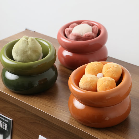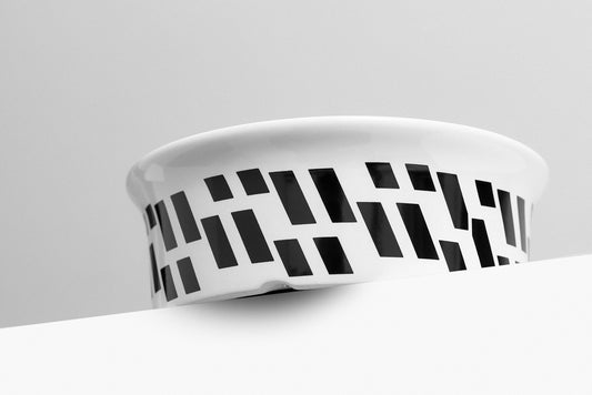 B"PETS Black and White Herringbone Ceramic Pet Bowl